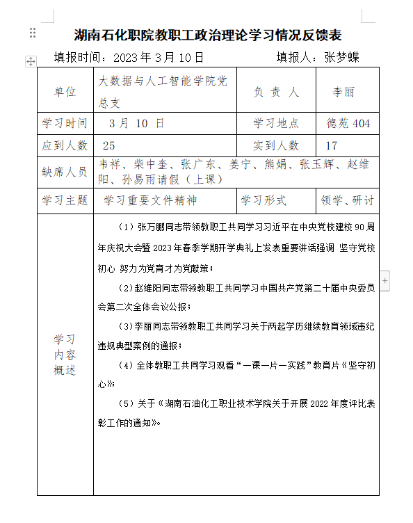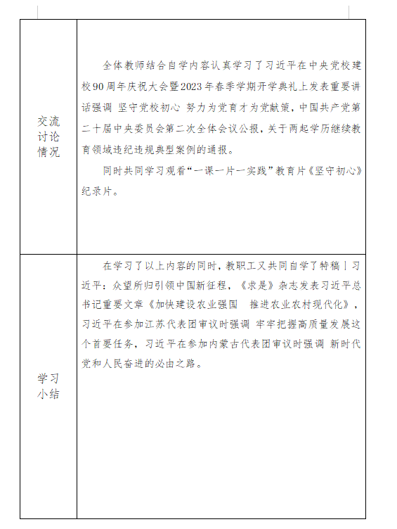 2023年3月中心组、教职工政治理论学习情况