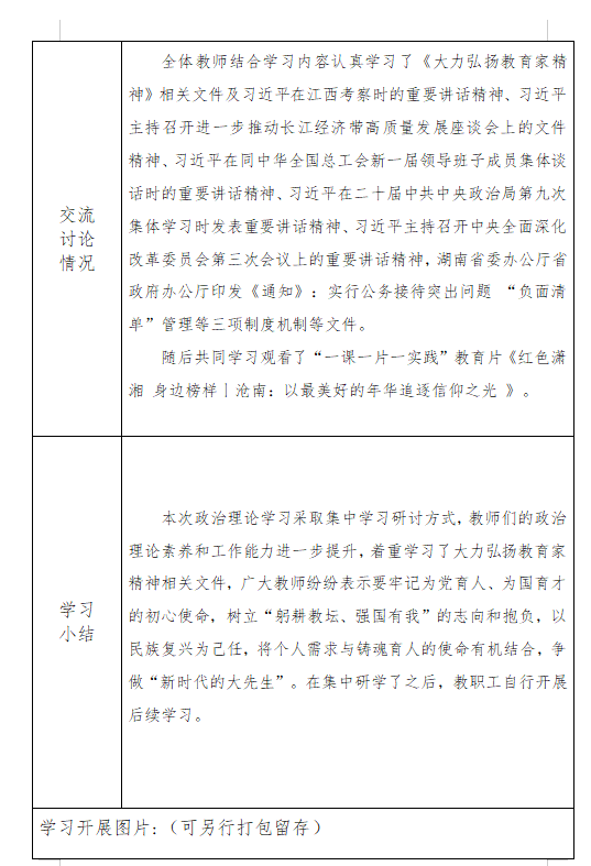2023年11月中心组、教职工政治理论学习情况