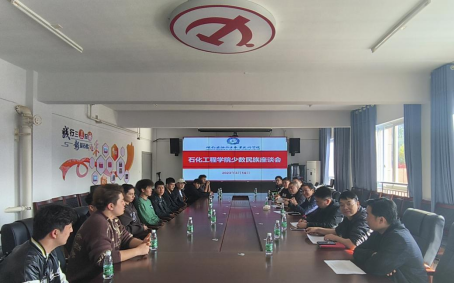 本网讯 为深入了解少数民族学生在校学习、生活情况,进一步做好新疆籍少数民族学生的管理服务工作,3月14日下午,石化工程学院在德远楼610会议室召开2022级新疆籍少数民族学生座谈会。石化工程学院党总支书记陈卓、副书记隗小山,学生工作部副部长杨思恩,少数民族学生代表及相关班主任老师等共20余人参加座谈会,会议由学工办主任吴飞主持。