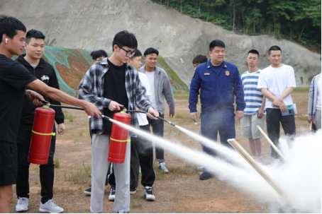 学生使用灭火器进行灭火