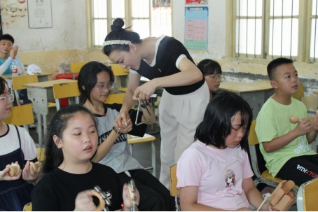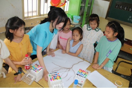 据悉,早在活动开展前期,该团队就与当地有关部门取得了联系,了解孩子们的学习情况并认真计划好每天的课程安排。一来到岑川镇中心小学,他们就把60余名小学生按兴趣爱好分成音乐、舞蹈、武术、篮球、足球、手工艺品制作6个小组,分别开展实践教育活动。