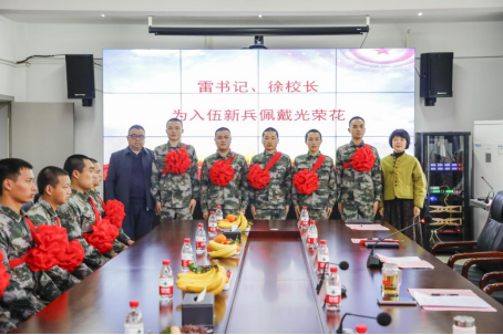 大会宣读了应征入伍19名同学名单,雷放华、徐方为每一位入伍新兵佩戴光荣花。新兵代表发言中表示,自己将肩负使命,以优秀军人为榜样,心怀崇高理想,练就过硬本领,为国家强大贡献一份力量。