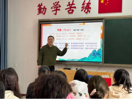 本网讯  “‘车前草,一把摘’,明媚的春光里,妇女们一边劳作,一边哼唱着这首歌谣……。”人文学院的方俊夫老师伸出手,模仿古人采摘车前草的动作,引导同学们穿越时空的长廊,步入那片古人正在采撷车前草的田野,感受《诗经·芣苢》中人们节律欢快、生机蓬勃的劳动歌舞。另一间教室里,人文学院卢元姗老师正带领同学们唱着:“关关雎鸠,在河之洲,窈窕淑女,君子好逑……。”学生们跟随古朴悠扬的韵律,齐声吟唱《诗经·关雎》,感受古人真挚美好的爱情。