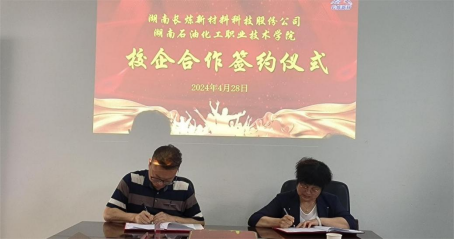 学校副校长符文文,学校党委委员、石化工程学院院长万琼、湖南长炼新材料科技股份有限公司董事兼总经理伍小驹以及校企相关部门负责人参加了本次活动,仪式现场气氛热烈,双方对此次合作充满期待。符文文表示,校企双方的合作基础是扎实的,合作领域是广阔的,合作意义是深远的。湖南长炼新材料科技股份公司作为一家国家高新技术企业,拥有大量高水平层次的人才和重点实验室、中试实训基地等资源,学校将充分利用企业所提供的平台,谱写科教融汇新篇章。