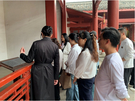 在解说员的解说下,历经风雨洗礼的岳阳楼让大家深刻体会到了历史的沧桑巨变,范仲淹的《岳阳楼记》反映的“先天下之忧而忧,后天下之乐而乐”忧国忧民忧乐精神和“两袖清风”的廉政观让大家再次体会到中华文化的博大精深。当看到历代文人赞扬范仲淹的忧乐精神和廉政观的文言诗句时,大家亲身感悟忧乐精神的丰富内涵,被历经几千年不断中华文化所蕴含的顽强的生命力所折服。