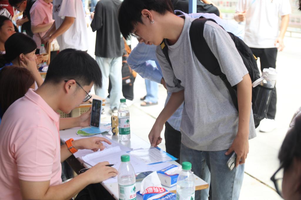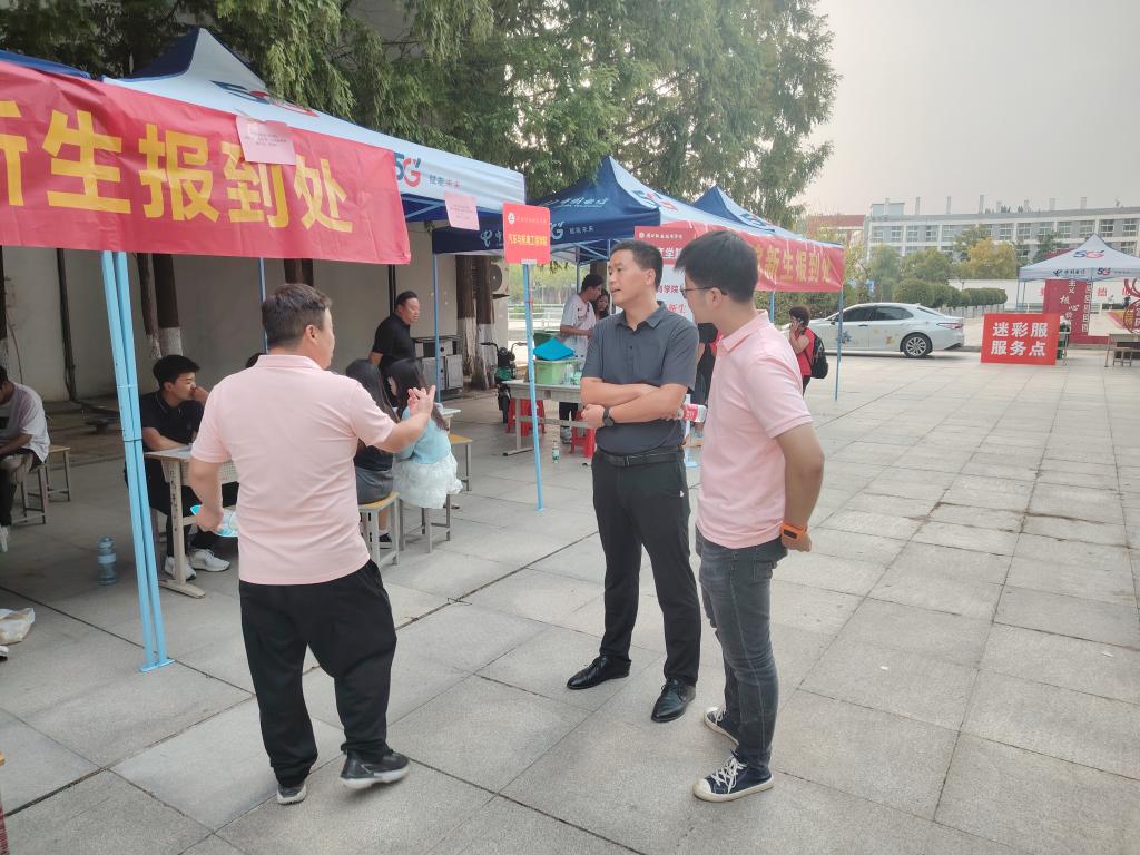 报到现场,辅导员忙碌地为新生办理入学手续,仔细核对信息、发放宿舍钥匙,耐心解答各种问题。学院领导也始终在迎新现场之间穿梭。他们与新生和家长亲切交流,了解他们的需求和期望,为新生们送上关怀和祝福。
