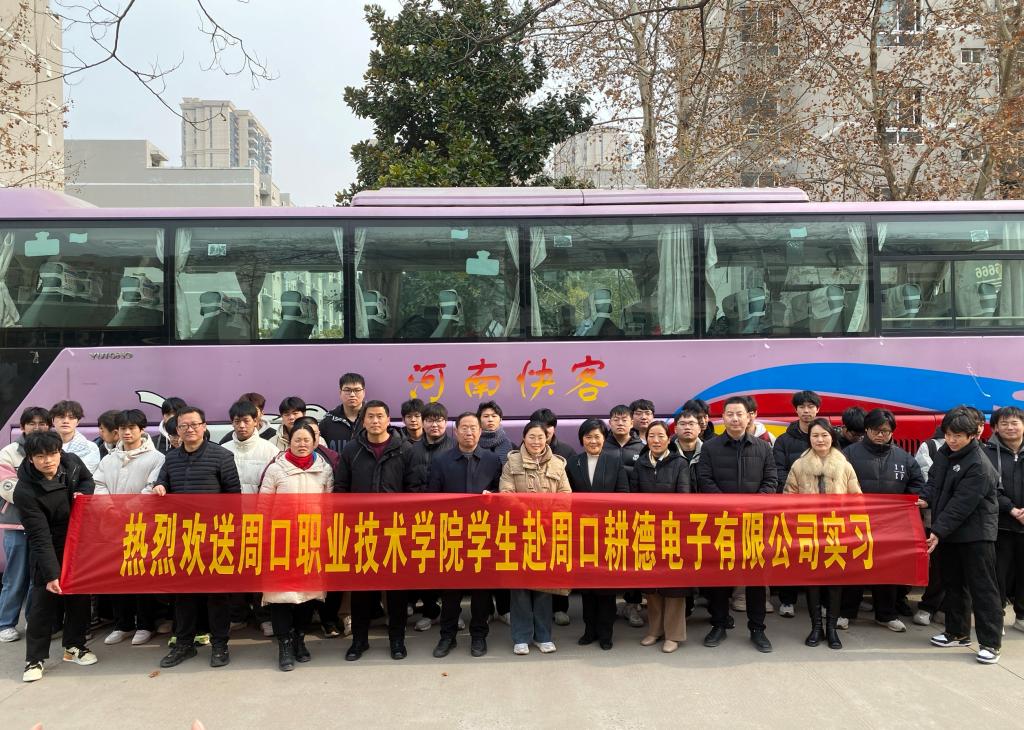 为提升人才培养质量和学生就业质量,推进产教融合,深化校企合作,12月27日,betway西汉姆联官网23级机电一体化奔赴周口耕德电子有限公司实习,副校长李秀萍、党总支书记崔东风、副院长王文立、学管办主任王亮、教学办主任丁兰花、综合办公室主任雷艳华出席现场,欢送实习生。