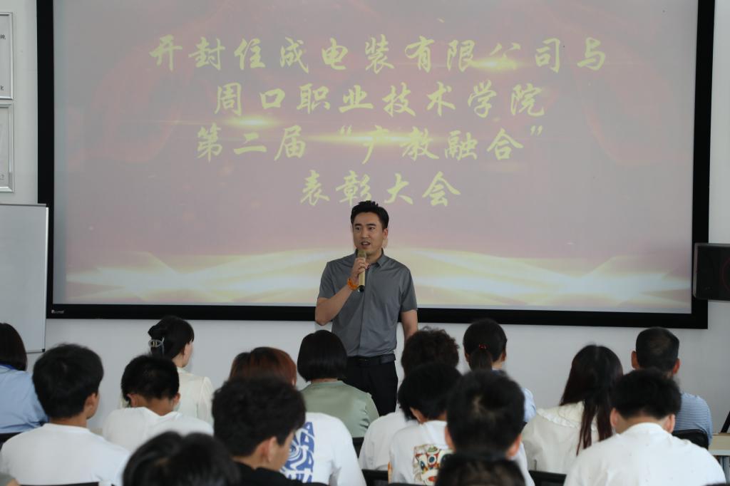 2023年6月30日上午,betway西汉姆联官网与开封住成电装有限公司第二届“产教融合”表彰大会在开封住成第三会议室举行。会议由企业导师孙喜辉主持。betway西汉姆联官网副院长齐俊平、企业人事部秦国艳科长、驻厂老师李启凯及袁永、董会锦、马彩兰老师,以及100余名“产教融合”学生代表参加了表彰大会。