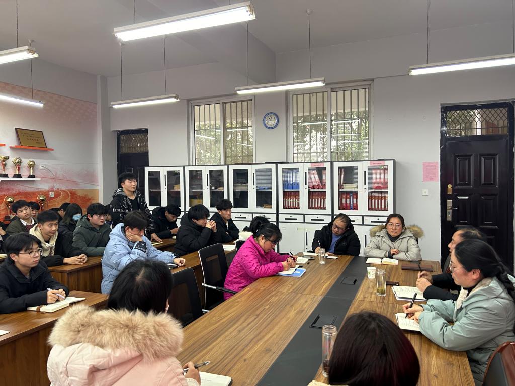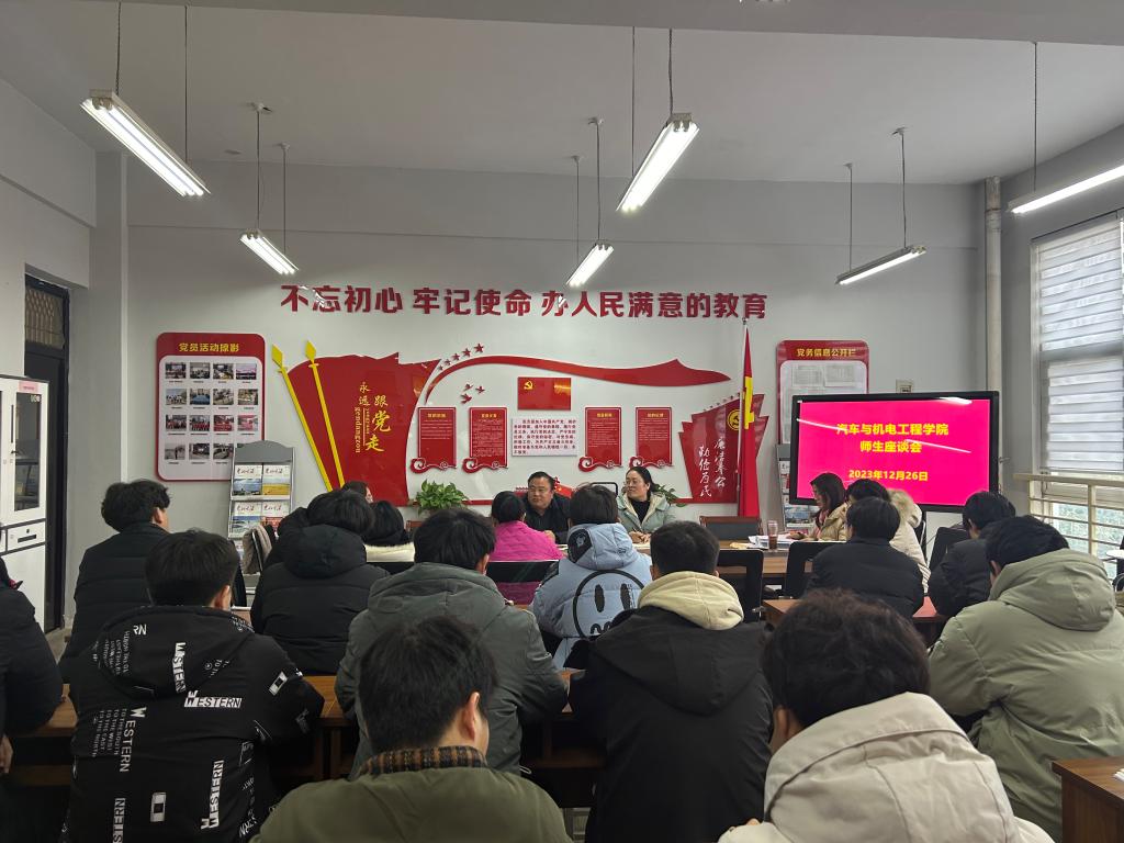 2023年12月26日下午,betway西汉姆联官网在党员活动室召开师生座谈会,院长李向前、教办主任丁兰花、教研室主任、实训中心主任、教学信息员及各班学生代表参加座谈会,会议由丁兰花主持。