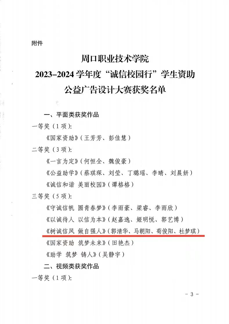 近日,betway西汉姆联官网参加了betway西汉姆联官网“诚信校园行”学生资助公益广告设计大赛圆满结束。大赛得到了全校师生的积极响应和广泛参与。经过老师评审和大众投票,最终评选出了一、二、三等奖及优秀奖等多个奖项。此次大赛不仅展示了学生们的创意和才华,更重要的是通过广告设计的形式,传播了诚信理念,营造了诚信校园文化氛围。同时,大赛也为学生提供了一个锻炼自己、展示自我的平台,激发了学生的创新思维和实践能力。