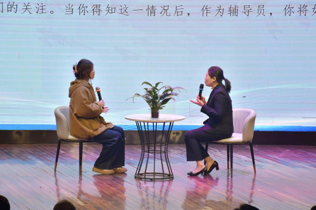 “谈心谈话”环节中,参赛辅导员抽签选择助演学生,助演学生将自己内心的困惑与迷茫展现出来,每一个问题都如利刃出鞘,步步紧逼,让整个场面充满了紧张感与挑战性。而面对助演学生的步步紧逼,李哲老师和苏大体老师临危不乱,凭借自身深厚的工作经验与扎实的理论基础,巧妙化解。其应对策略灵活多变,立场坚定如磐,对学生工作的热爱与情怀更是溢于言表,赢得了现场观众一阵又一阵热烈的掌声,仿佛每一次掌声都是对他们智慧与爱心的敬意与赞叹。