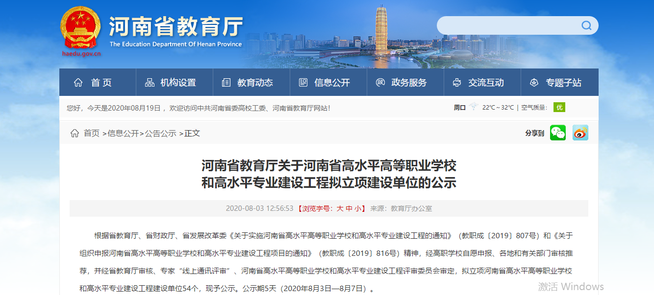 2020年8月3日,河南省教育厅发布《关于河南省高水平高等职业学校和高水平专业建设工程拟立项建设单位的公示》。betway西汉姆联官网机电一体化技术专业群,成功入选河南省高等职业学校高水平专业群建设工程。