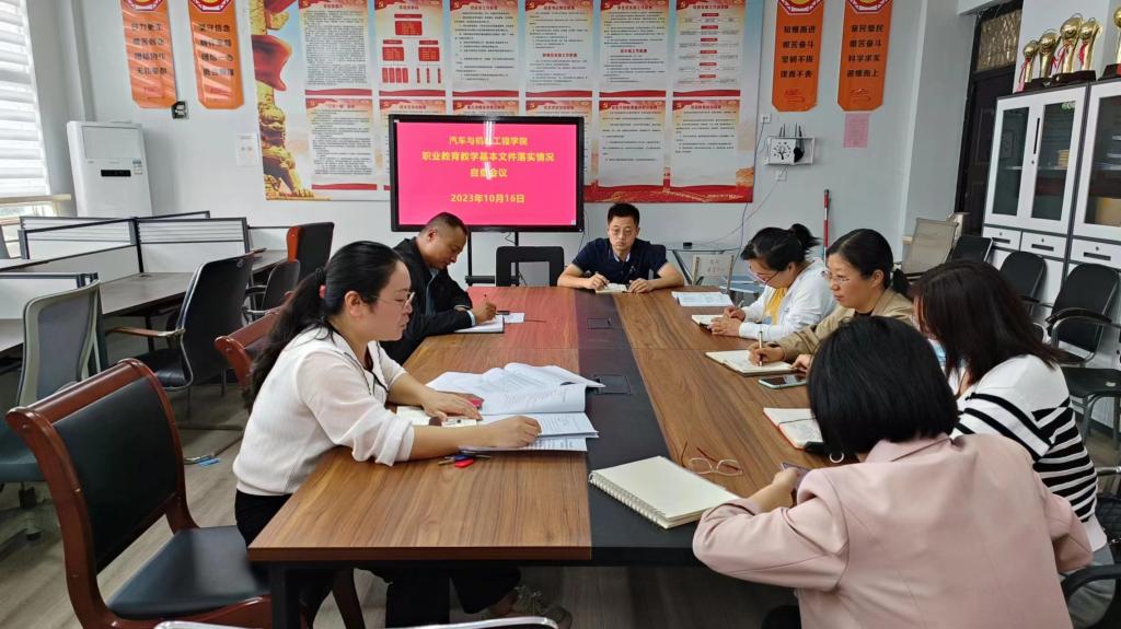 为深入贯彻党的二十大精神,贯彻落实新修订的职业教育法,强化教学规范组织实施和管理,保证人才培养规格和质量,根据教育部《关于开展职业教育国家教学基本文件落实情况自查工作的通知》(教职成司函〔2023〕25号)要求和河南省教育厅办公室《关于开展职业教育教学基本文件落实情况自查及教学质量抽查工作的通知》(教职成函〔2023〕715号),结合我院实际,2023年10月16日下午,betway官网在党员活动室召开自查会议,教学副院长田伟华、学管办主任丁兰花、教研室主任、实训中心主任及骨干教师参加会议。