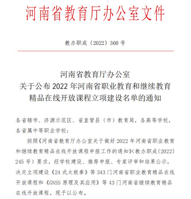 近日,河南省教育厅公布了 2022年河南省职业教育和继续教育精品在线开放课程立项建设名单,betway西汉姆联官网5门课程获批立项建设,betway官网张昭晗老师团队的《智能制造单元集成调试与应用》课程获批。近年来,betway官网持续深化“三教”改革,整合优质教学资源,加强精品在线开放课程建设,切实提高教育教学质量,目前已立项建设省级精品在线开放课程 2门。