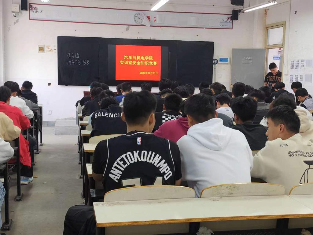 为进一步强化学生实验实训室安全的底线思维和红线意识,培养学生的实验安全理念,让安全意识入心入脑,营造安全的实验环境,从而更好地保障校园安全稳定和师生生命财产安全,根据河南省高校实验室工作研究会《关于开展“河南省高校实验室安全知识大赛”的通知》(豫高实【2023】6号)要求,10月11日下午,我院在6243教室举办实验室安全知识大赛,大赛主题为“提升实验技防能力,保障师生健康安全”,2023级各班参赛选手参加。