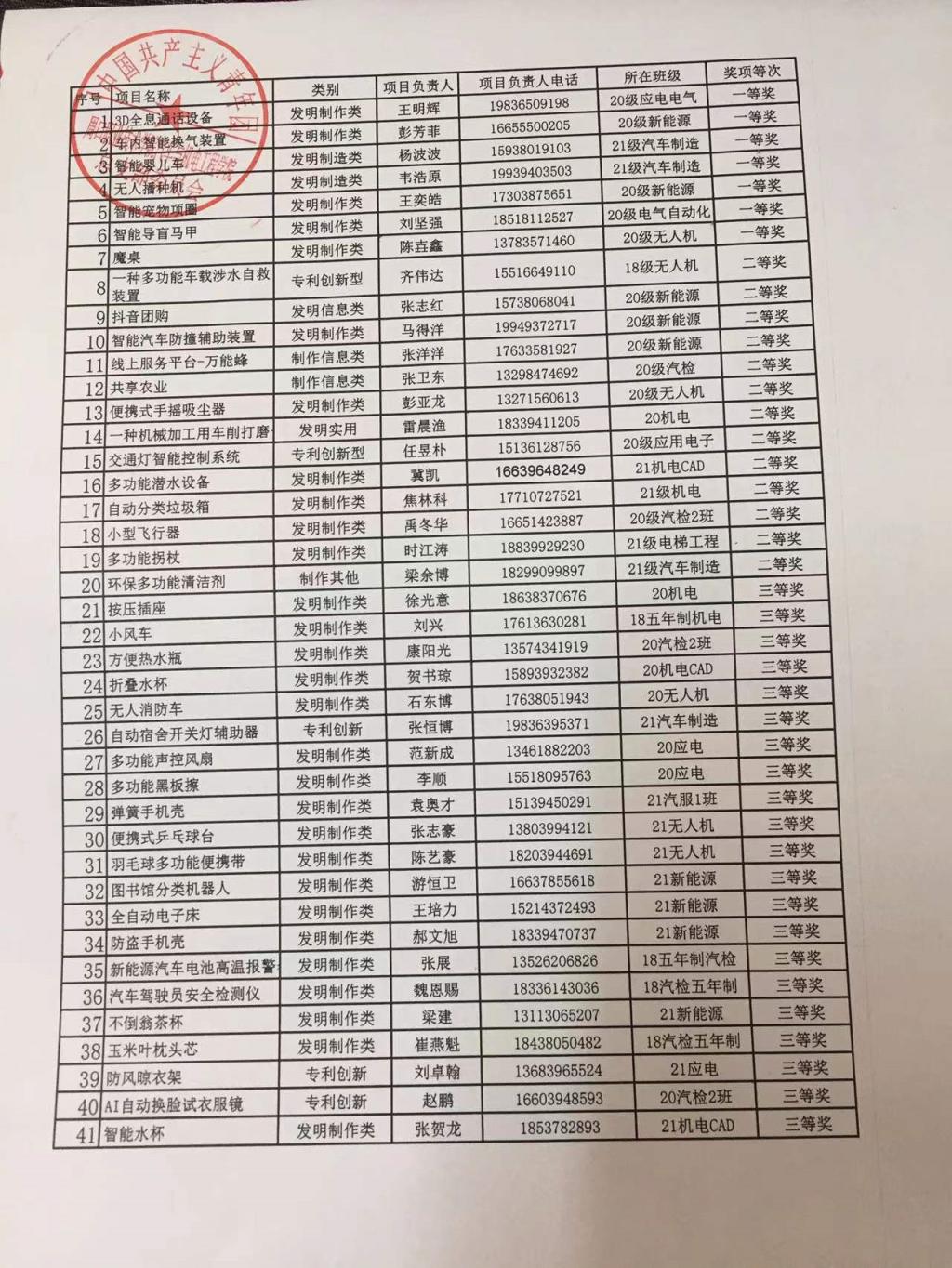 betway西汉姆联官网“发明杯”职业技能大赛获奖名单公布