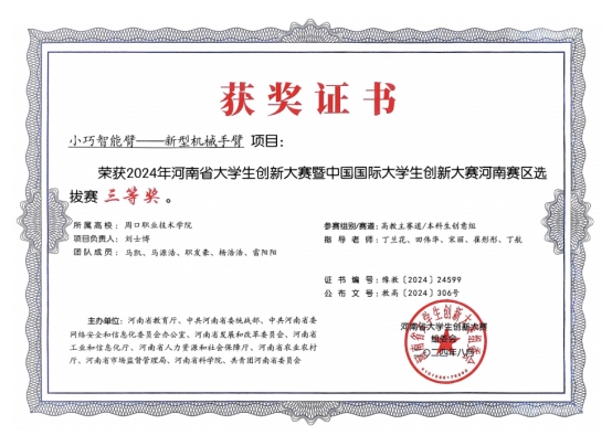 2024年河南省大学生创新大赛暨中国国际大学生创新大赛河南赛区选拔赛三等奖