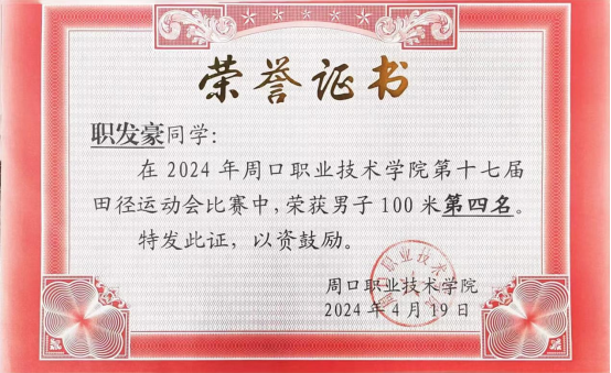 他始终认为,作为一名大学生,不仅要在学术上有所建树,更要在道德品质和文明素养上成为表率。他始终以身作则,遵守校规校纪,尊敬师长,团结同学,积极参与各类校园文化活动和社会实践活动。通过这些活动,他不仅锻炼了自己的能力,也提升了自己的综合素质。同时荣获了多个证书:河南省大学生创新大赛暨中国国际大学生创新大赛河南赛区选拔赛一等奖、河南省大学生创新大赛暨中国国际大学生创新大赛河南赛区选拔赛二等奖、河南省大学生创新大赛暨中国国际大学生创新大赛河南赛区选拔赛三等奖。
