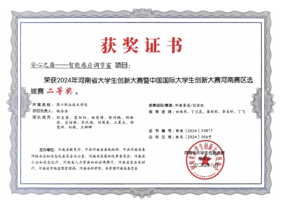 2024年河南省大学生创新大赛暨中国国际大学生创新大赛河南赛区选拔赛二等奖