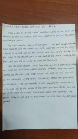 为了使同学们认识更多的英语文化,了解英语在国际交流中起着至关重要的作用。betway西汉姆联官网举办了以“我的校园风光”为主题的英语作文比赛,各个班级积极响应,派出本班代表参加这次比赛。