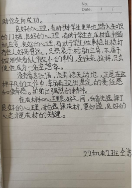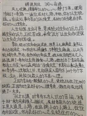 为鼓励和引导同学阳光成长,促进当代大学生树立正确的价值观、人生观。2023年5月11日,betway西汉姆联官网举行“拥抱阳光,润心前行”心理健康征文活动。各班学生积极参与投稿。