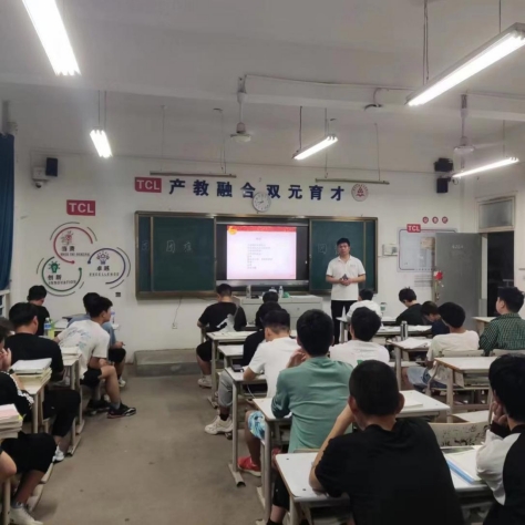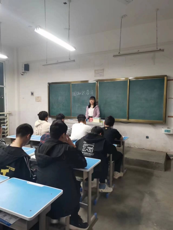 班会期间各班级辅导员讲解共青团的创建和“团旗、团徽、团歌、团员证”的产生及意义;学习过程中,同学们认真学习,并记录笔记。