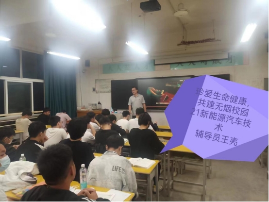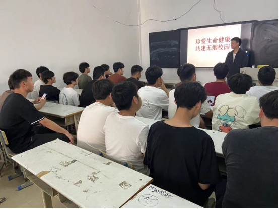 班会期间各班辅导员要求从我做起,营造无烟校园环境。自觉远离烟草,倡导文明健康的生活习惯。老师不在教学区、校园内等公共场所及学生面前吸烟,并带头戒烟,做戒烟先锋;学生不在宿舍、教室、图书馆、卫生间、餐厅、操场等校园公众场所吸烟,争做文明学生。拒绝“第一支烟”,远离烟草危害,永做健康公民;主动参与禁烟,给身边的人创造一个健康的学习、工作和生活环境。积极参与宣传吸烟的危害,让你的亲人和身边的朋友明白吸烟的危害,自觉远离烟草。坚决不接受敬烟,并积极劝阻他人吸烟。当遇到他人敬烟时,请礼貌拒绝;为了自己和大家的健康,请对身边的每一个同学友好地提醒和劝诫,并提醒其吸烟的危害。