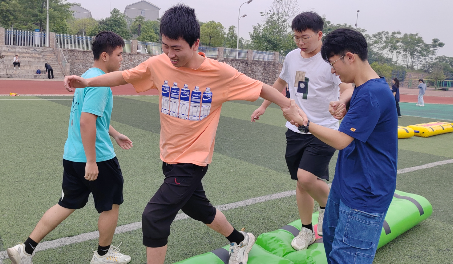 “信任背摔”项目更是考验了彼此之间的信任和勇气,同学们在互相支持中建立起更深厚的情谊;“心理拔河比赛”则展现了同学们顽强拼搏的精神,大家齐心协力为团队荣誉而战。