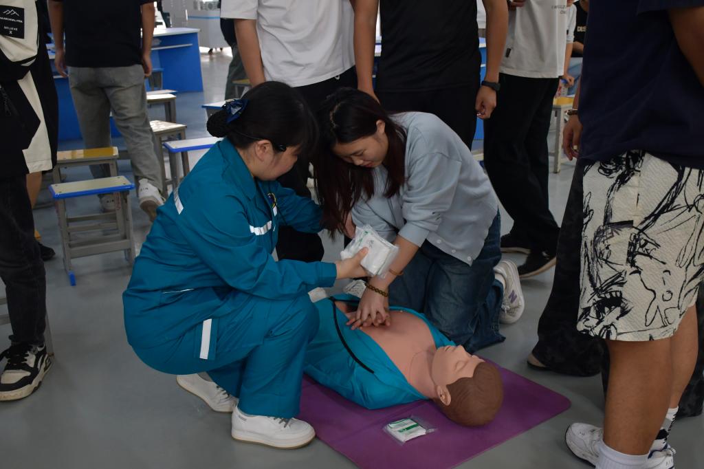 在讲解心肺复苏术时,医护人员利用人体模型进行现场示范,详细展示了如何判断意识、开放气道、进行胸外按压和人工呼吸等操作。师生们聚精会神地聆听,不时拿出手机记录关键步骤。随后,betway官网师生们纷纷踊跃参与实际操作,在医护人员的耐心指导下,亲身体验心肺复苏的全过程,进一步掌握了这项关键的急救技能。