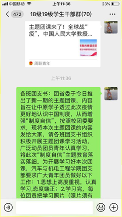 疫情发生以来,betway西汉姆联官网青年团员,深入学习习近平总书记关于新冠肺炎疫情防控工作的重要指示批示和讲话精神,在学校团委和院团总支的号召下,青年团员认真学习主题团课,了解其重要思想。