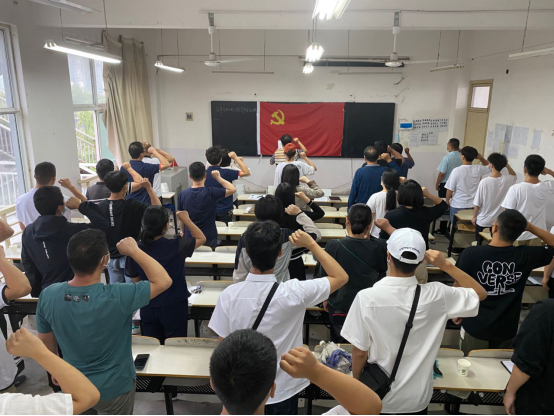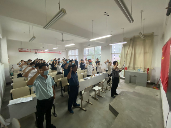 会前,崔书记带领全体教师、学生党员重温入党誓词和宣誓。