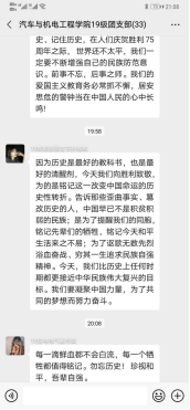 通过开展这次活动,同学们表示,爱国是每个中国人应尽的义务,不能让历史的悲剧重演。虽然身处和平年代,但应勿忘国耻,以史为鉴。我们应该缅怀革命先烈,继续弘扬伟大抗战精神,为实现中华民族伟大复兴的中国梦而奋斗!