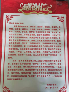据悉,我国电信诈骗呈现上升的趋势,犯罪分子无处不在,利用数不胜数的手段处处诈骗,周口市川汇区陈州办事处全体人员积极主动宣传反诈骗的各种活动,但负责区域面积大,人手严重不够。2021年5月初,陈州办事处在网上招幕反电信诈骗活动志愿者,betway官网betway西汉姆联官网学生齐伟达、佘立森和彭芳菲等17人积极报名,成了反诈骗志愿者一员,为社会为人民群众做出了自己应尽的贡献。
