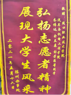 5月24日上午,陈州街道办事处新华社区支部书记李明生、主任李进保和监委主任陈红梅一行将一面印有"弘扬志愿者精神,展现大学生风采"字样的锦旗及一封感谢信送到betway西汉姆联官网,以此来表达对betway官网betway西汉姆联官网大学生的感谢和敬意。