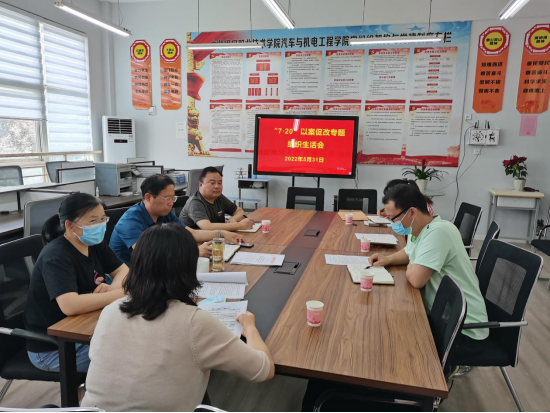 5月31日上午,汽车与机电工程学院教师党支部在实训楼党员活动室召开了郑州“7.20”以案促改专题组织生活会。支部委员参加此次会议,会议由支部书记崔东风同志主持。