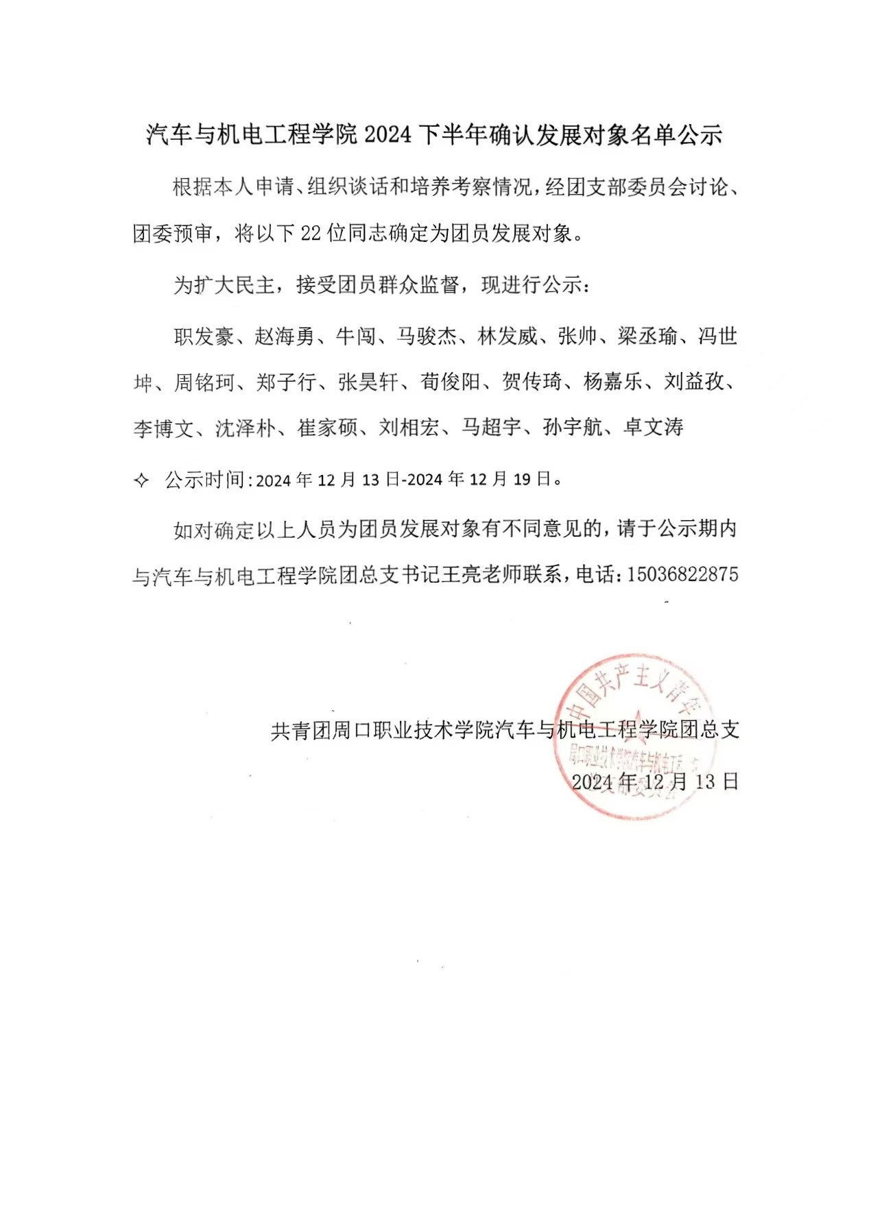 betway西汉姆联官网2024下半年确认发展对象名单公示