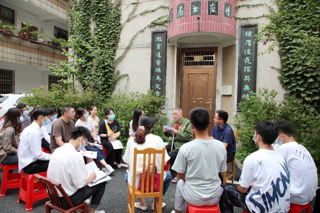 拜访完张超烈士的家人,师生们又来到86岁抗美援朝老兵、全国著名收藏家邹光忠的家(积微书屋)中。在积微书屋前的“板凳课堂”里,邹老讲述了自己抗美援朝的光辉战斗史,带师生重温了那段峥嵘岁月,上了一堂别开生面的党史课。老一辈“志愿人”不怕牺牲和勇于奉献的革命精神,让每一位同学深受教育和感动。