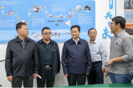 省人大常委会副主任叶红专(左一)在无人机实训室听取介绍