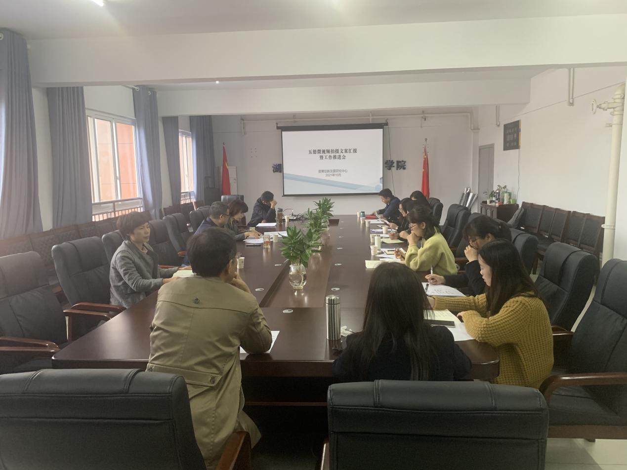 (通讯员谢畅)10月15日,“五德”微视频拍摄工作推进会在德远楼610会议室召开。学校党委书记雷放华、党委副书记徐方,党委委员刘三青、王智以及各相关二级学院书记、院长和项目负责人参加了会议。