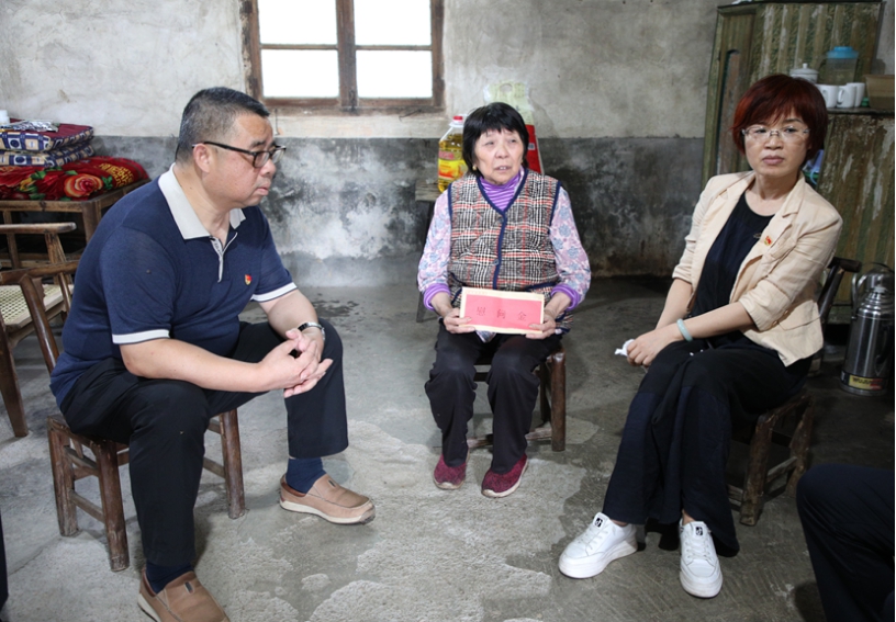 雷放华一行来到该村贫困监测户、困难党员陈香英家中,78岁的陈香英是一名有着45年党龄的老党员。近一年多来,大儿子、女儿、老伴接连去世,现在与患有残疾的二儿子相依为命。痛失亲人让她精神上倍受打击,但是老人依然坚强地生活着。她积极支持和参与村里的活动,从不向组织提要求。雷放华和徐方代表学校送上慰问物资和慰问金,并向陈香英老人表达敬意,鼓励老人一定要树立生活的信心,好好照顾自己的身体。雷放华要求学校帮扶队平时要经常上门照看陈娭毑的生活,帮助老人解决实际困难。