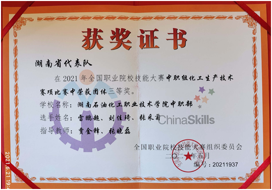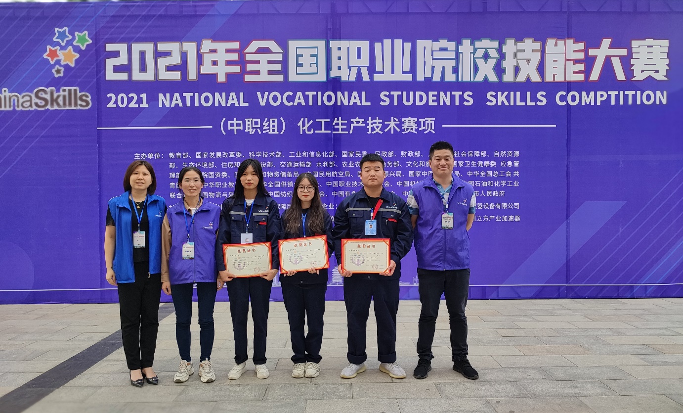 (通讯员 陈卓 贾金锋)6月21日,从兰州传来喜报。由伟德官网石化工程学院院长万琼任领队,贾金峰、张晓磊任指导教师,石化5182班刘佳琦、张彩菊、石化5183班雷鹏超组成的代表队作为湖南省唯一一支参赛队,在2021年全国职业院校技能大赛(中职组)化工生产技术赛项中取得第9名的好成绩,荣获三等奖。这是伟德官网中职学生连续两次参加全国职业院校技能大赛并获得佳绩。