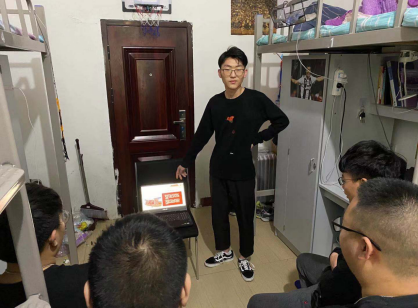 参加升旗仪式后,同学们学习党史的热情更加高涨。学生党支部宣讲团成员王世龙同学在宿舍热情地为身边同学讲述党史故事,宣讲红船精神。