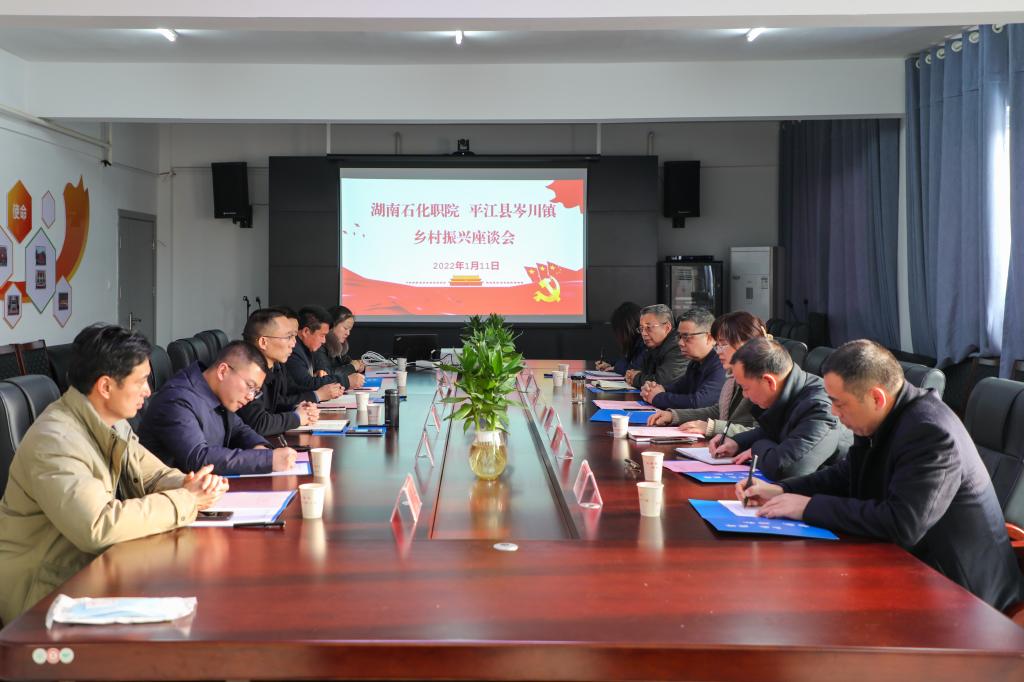 本网讯  1月11日,平江县岑川镇党委、镇政府携高峰村支村两委成员来到伟德官网就乡村振兴驻村工作举行座谈会。学校党委书记雷放华、党委副书记徐方和相关职能处室领导以及伟德官网驻村工作队以下简称“工作队”全体成员参加了座谈会。