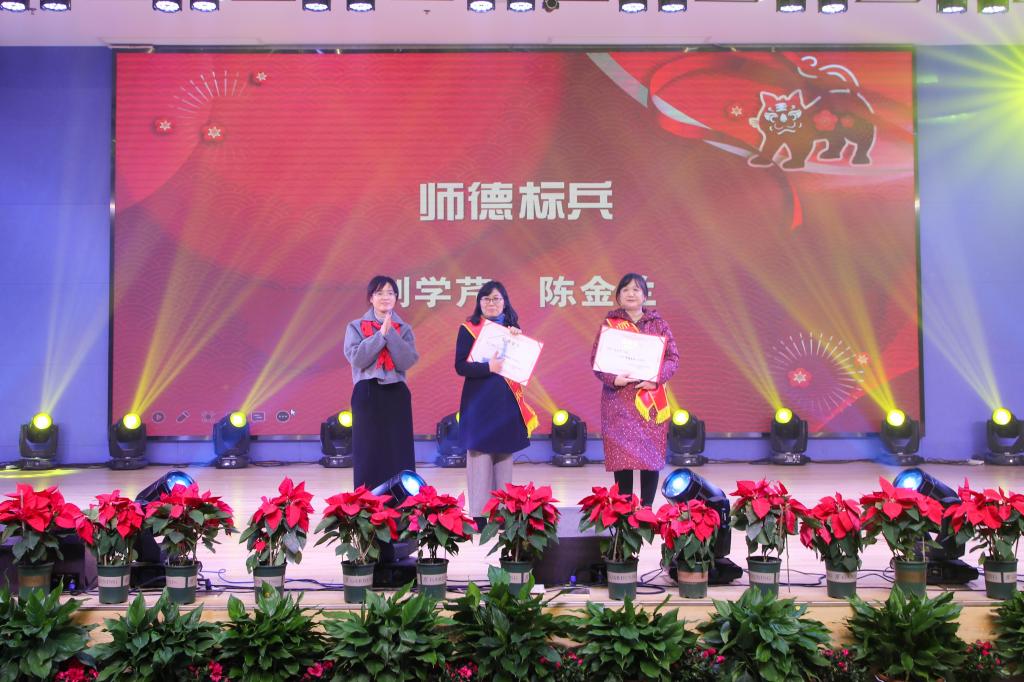 ▲党委副书记徐方(左一)为“师德标兵”颁奖