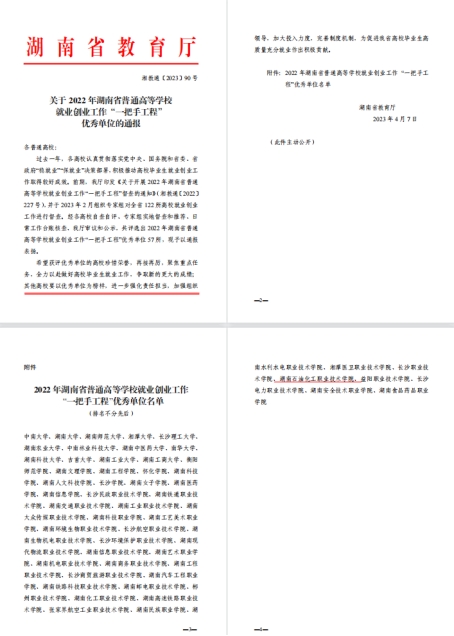 自办学以来,学校高度重视毕业生就业创业工作。学校已六、十二年获评湖南省普通高等学校就业创业工作“一把手工程”优秀单位“就业好、好就业”已成为学校一张闪亮的名片。今后学校将珍惜荣誉,再接再厉,多措并举,用心用情用力助推毕业生高质量充分就业,为实施“三高四新”战略、建设现代化新湖南贡献力量。