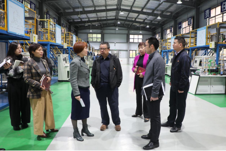 ▲学校领导班子成员在石化工程学院实训室调研