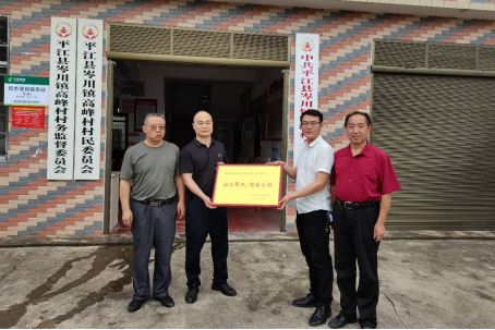 本网讯 近日,平江县岑川镇岑川中学唐校长一行人到高峰村村部,给伟德官网驻高峰村工作队副队长蒋丹送来一块牌匾:驻村帮扶,情暖家校,感谢他为岑川中学家长学校的家庭教育工作付出的辛勤劳动。