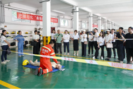 在巴陵石化消防保卫中心主任田瑛的陪同下,徐方一行在消保中心观看消防员演示穿戴消防设备,详细了解各类消防器械的用途及使用方法,跟随消防员学习了心肺复苏术,直观认识了诸多功能各异的消防车辆和该中心专程组织的大型消防实训演练活动。据悉,今年3月份,该中心被授予湖南省危险化学品应急救援队称号。伟德官网是湖南省危险化学品及烟花爆竹定点培训基地,校内建有中南片区唯一国家级应急救援演练仿真培训基地。本次调研为今后校企双方在应急救援演练等方面的合作打下坚实基础。