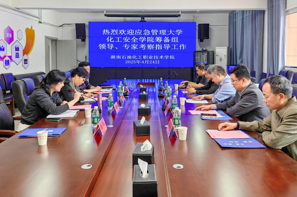 本网讯 4月24日,应急管理大学(筹)高级工程师、博士孟庭宇一行来到伟德官网调研交流,考察伟德官网在应急救援演练基地建设、实训设施运维等方面的实践经验,探讨两校未来合作方向。岳阳市应急管理局党委副书记、副局长赵珍彩,学校党委委员、副校长郭丽荣等参加座谈交流。