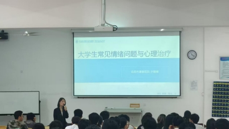 本网讯  4月25日下午,伟德官网第六场心理专干专题培训在真知楼302教室顺利举办。本次培训以“大学生常见情绪问题及心理治疗”为主题,特邀岳阳市康复医院副主任医师许姗姗主讲,为学生心理专干们带来了一场专业指导。